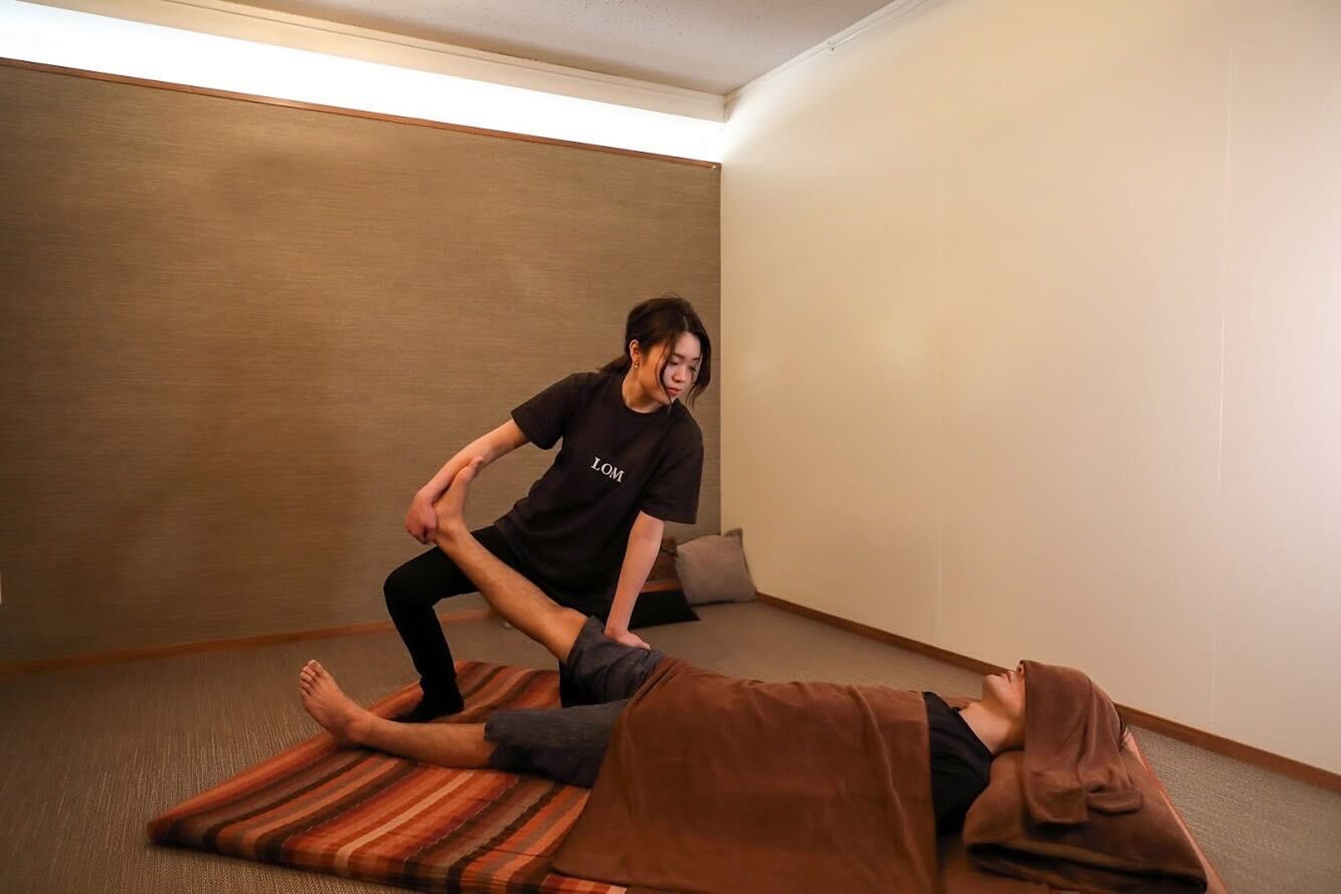 タイ古式マッサージは、指圧(指だけでなく肘や膝も使用)、ストレッチ、整体など、複数の技法を組み合わせて行います。